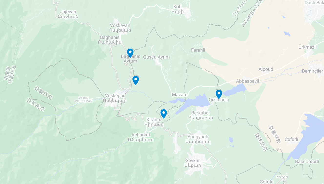 這四座村莊(Baghanis Ayrim, Ashagi Askipara, Kheyrimli, and Gizilhajili)原先屬於亞賽拜然的哈薩克區(Gazakh District),在第一次納戈爾諾-卡拉巴赫戰爭中被亞美尼亞佔領並劃分至塔武什省(Tavush Province)下,隨後居住在村落內的亞賽拜然人被驅離,導致四個村落至今仍處於無人的廢棄狀態。
